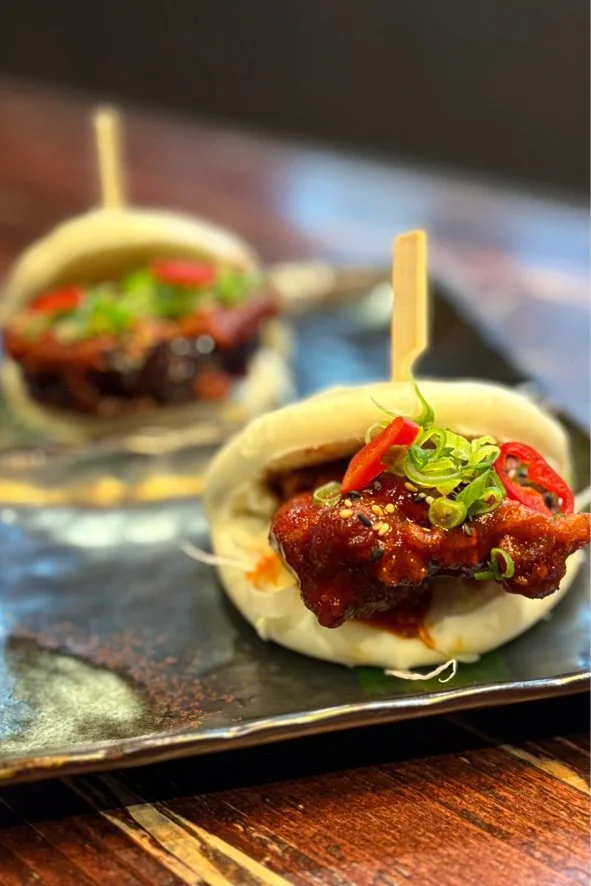If you like it spicy, then this bun is for you! Chicken Karaage or Aubergine Katsu (vegan) served in a soft steamed ‘bao’ bun with shredded cabbage, spring onion, slices of fresh red chilli and our sweet & spicy Gochugaru sauce. Included in our ‘ANY 2 HIRATA’ for £9.95